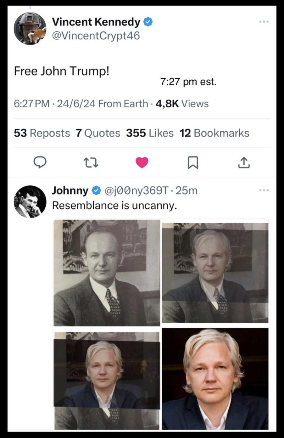 Is Julian Assange DJT’s first cousin??? We’ll find out Soon!!!!