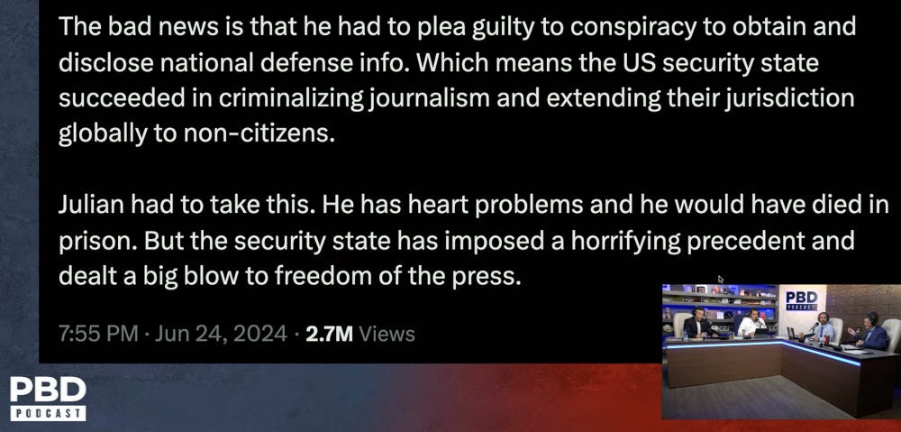 At this very moment, Julian Assange is on US soil and FREE!! He made a plea deal - guilty to a felony in exchange for freedom.